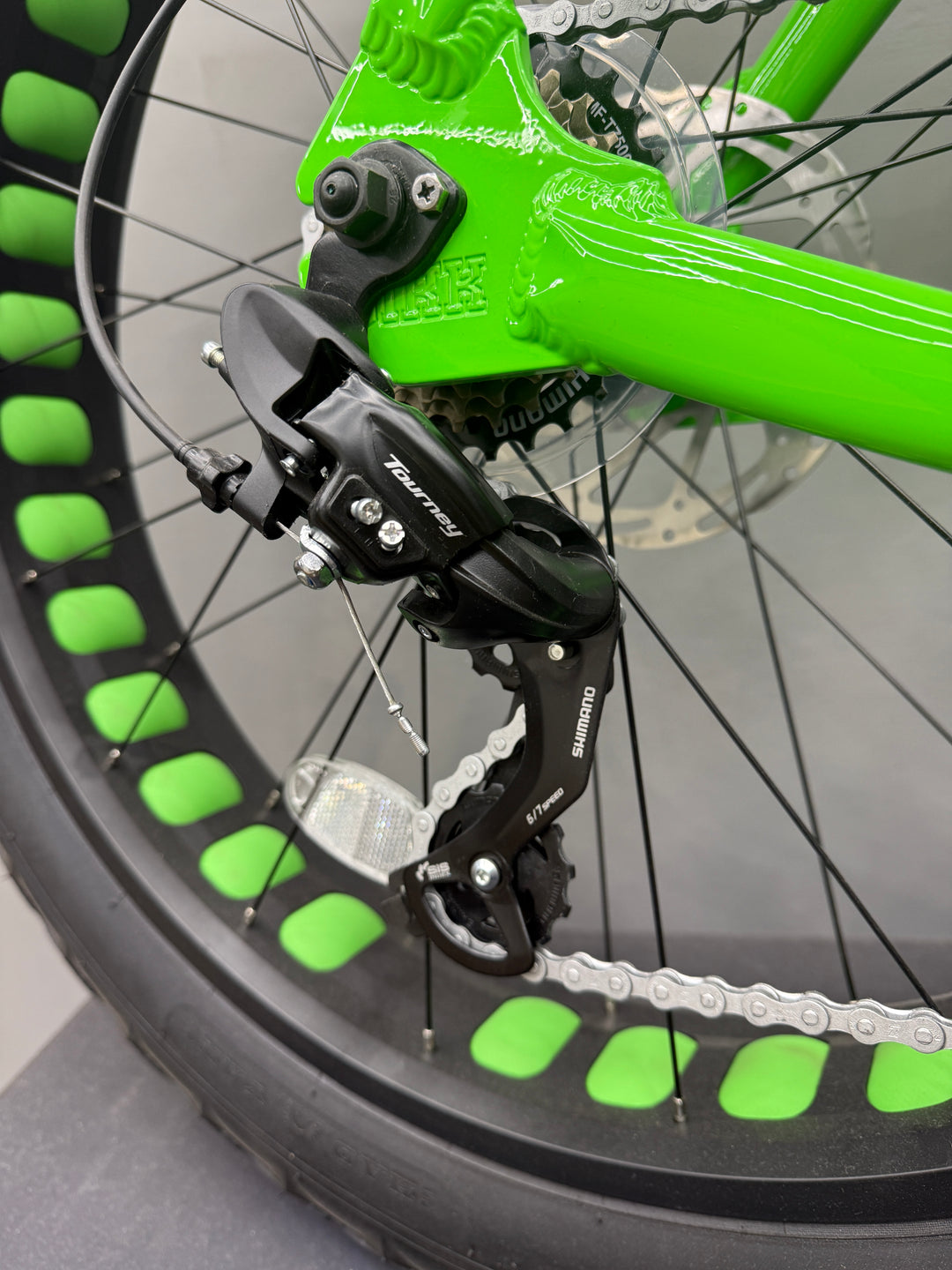 Sikk SS Aluminum 7 Speed UFO Fat Tire Cruiser - Flat Black Frame Green Wheels Whitewall Tires